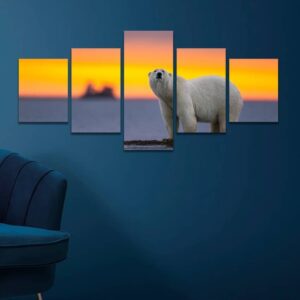 This stunning bear in the sunset wall art is the perfect way to add a touch of nature and beauty to your home. The majestic bear stands tall against a fiery orange sunset, creating a stunning and eye-catching scene. This high-quality canvas wall art is available to fit any space.